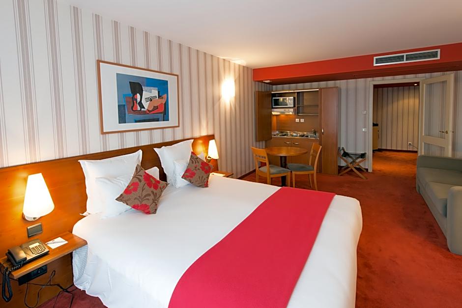 Air-conditioned room with a balcony and flat-screen TV. Includes a kitchenette and a separate room with a seating area. Extra bed is supplied on request only.